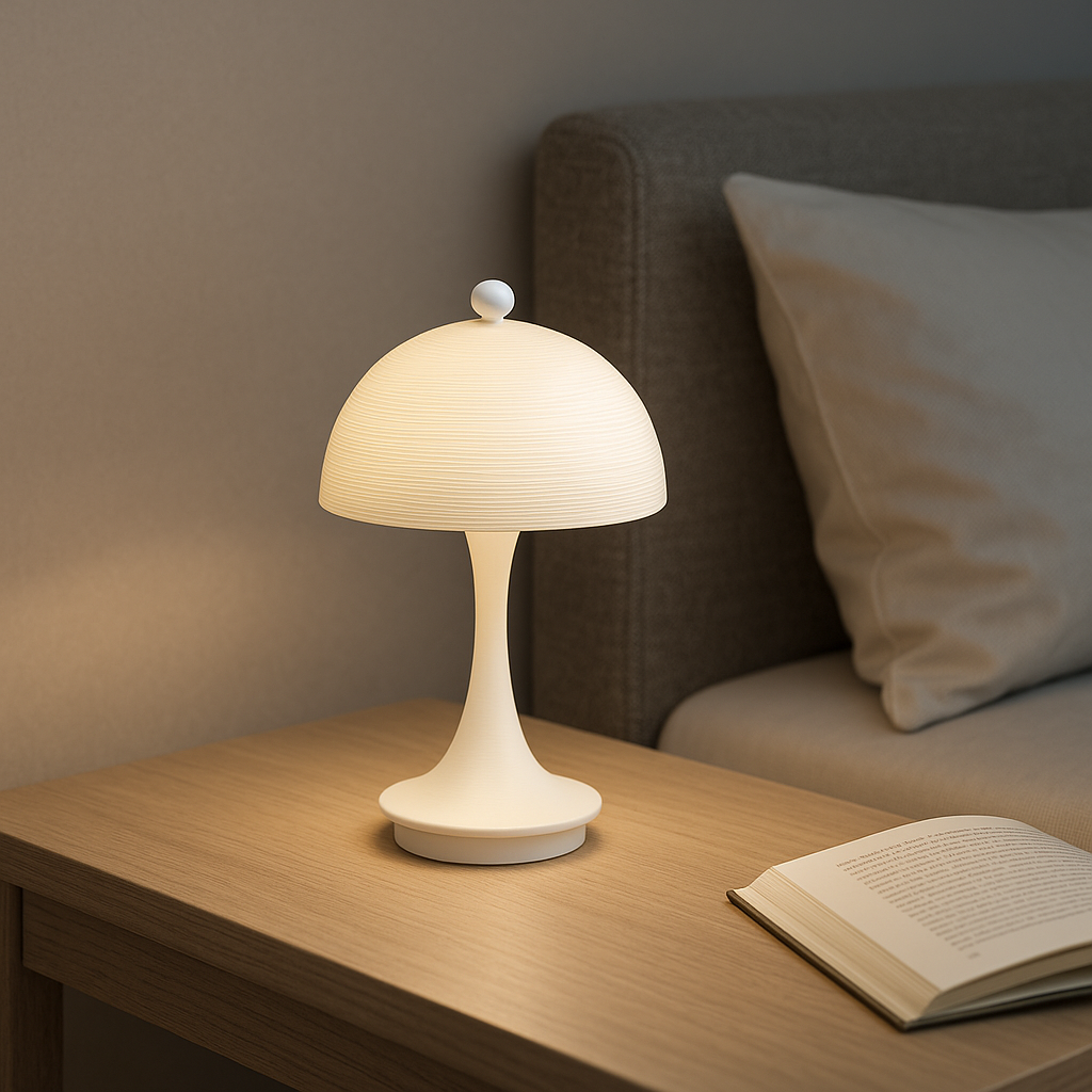 1971年に誕生したコンパクトなスタンドライト。半球形シェードと曲線的なフォルムが、やわらかな光を広げて空間を包み込みます。ベッドサイドやデスク、サイドテーブルに置いても邪魔にならない小ぶりなサイズながら、存在感と上質感を兼備。北欧デザインらしい温もりと機能性を併せ持つ、インテリアのアクセントになる一灯です。